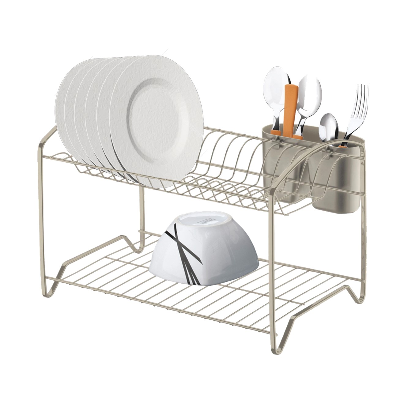 O Escorredor de Louças conta com uma estrutura em aço piatina (aço em formato achatado) que proporciona design diferenciado e traz beleza para cozinha. Possui 2 andares o que garante mais espaço para armazenar as louças, além de possuir porta talheres removível.