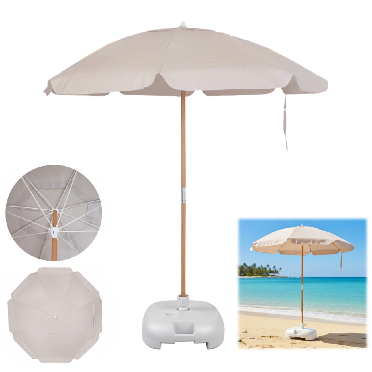 Guarda Sol Ombrelone Bagum 2 Metros Madeira Reforçado Bege Com Base Plástica Branca - Mor