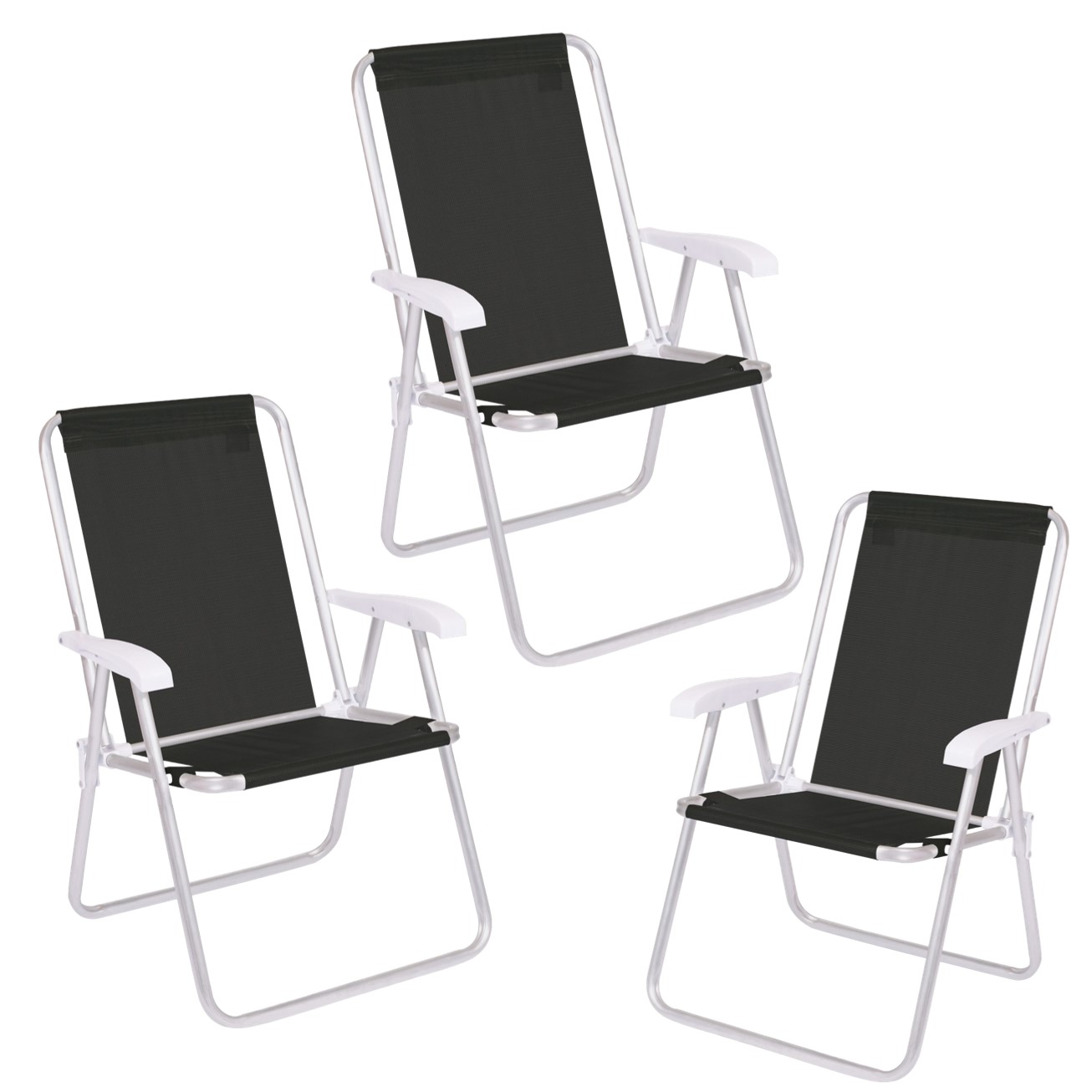 Kit 3 Cadeira Alta Conforto Alumínio Sannet Preta - 2181 Mor