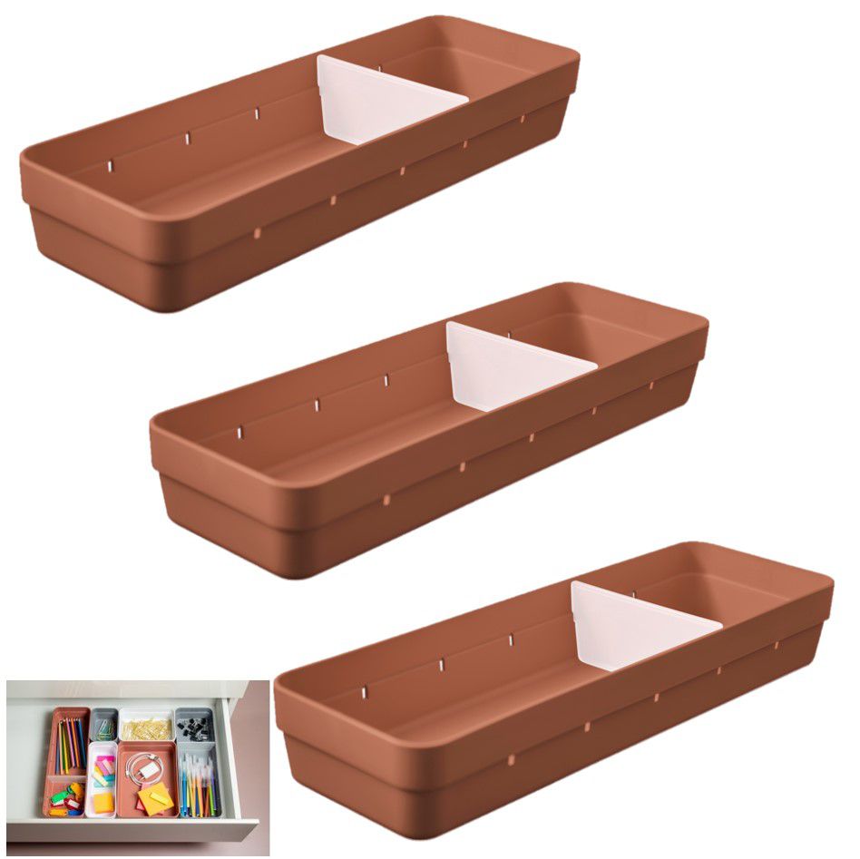 Kit 3 Organizador Gaveta Logic Com Divisória Multiuso Armário Plástico Terracota - KTE 002 Ou