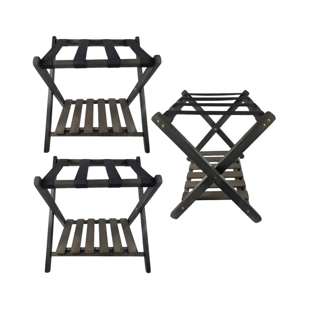 SUPORTE DE MALAS EM MADEIRA COM PRATELEIRA