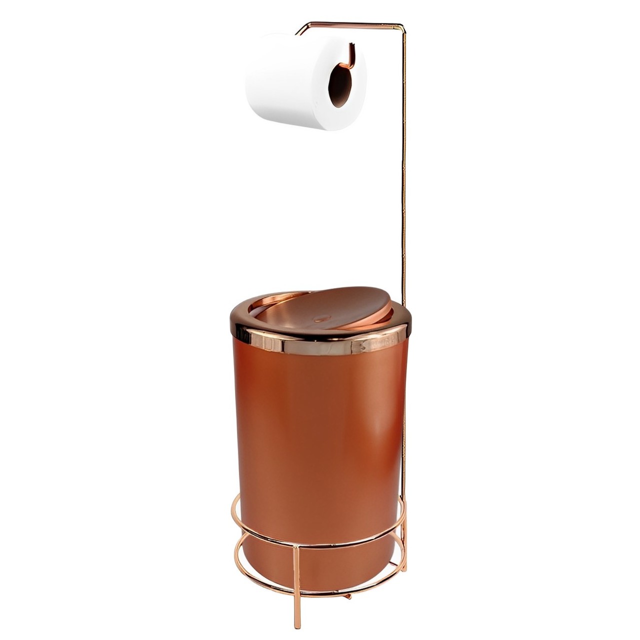 Kit Suporte Porta Papel Higiênico Com Lixeira 8L Tampa Basculante De Banheiro Cozinha Rose Gold - AMZ