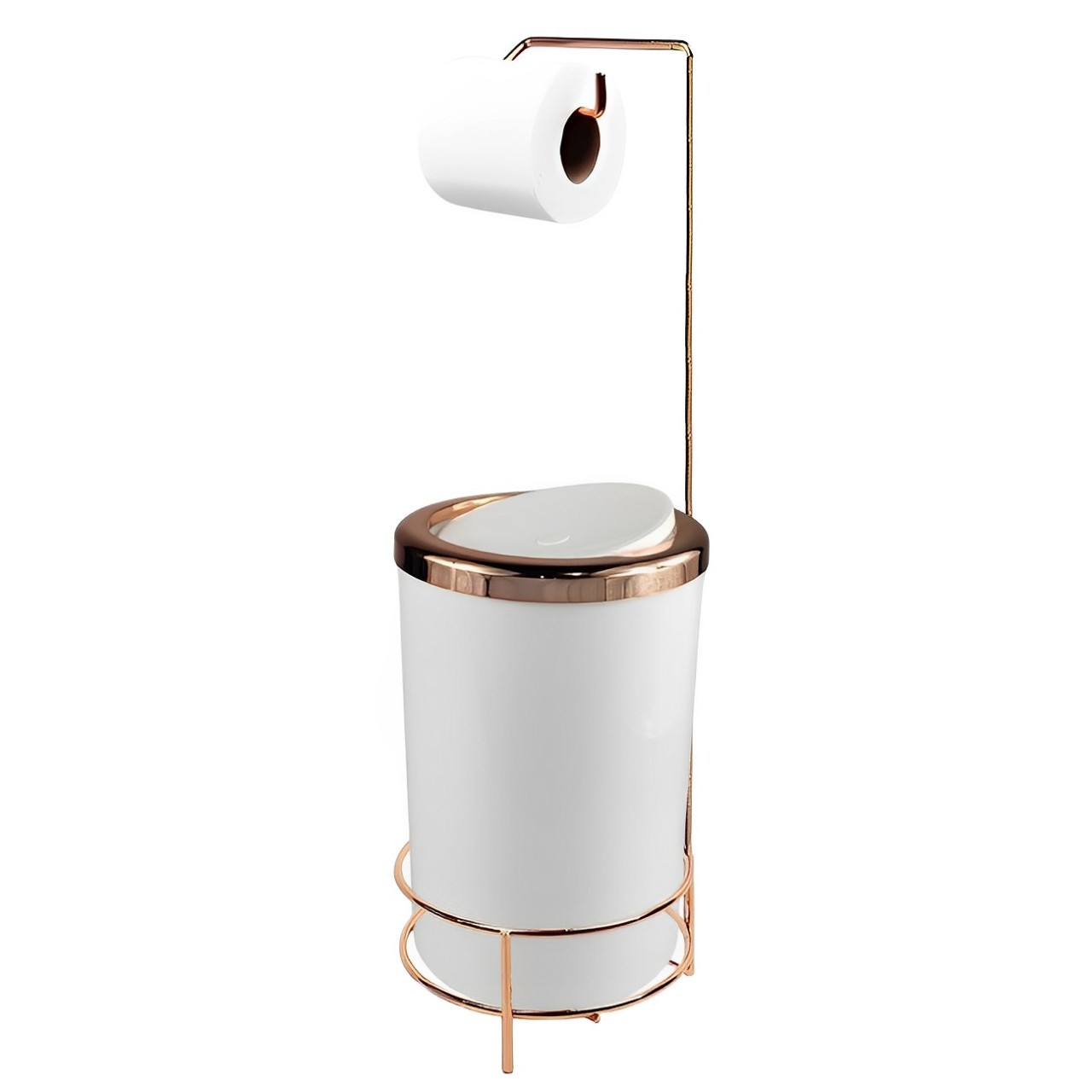 KIT SUPORTE PAPEL HIGIÊNICO COM LIXEIRA 8L BASCULANTE