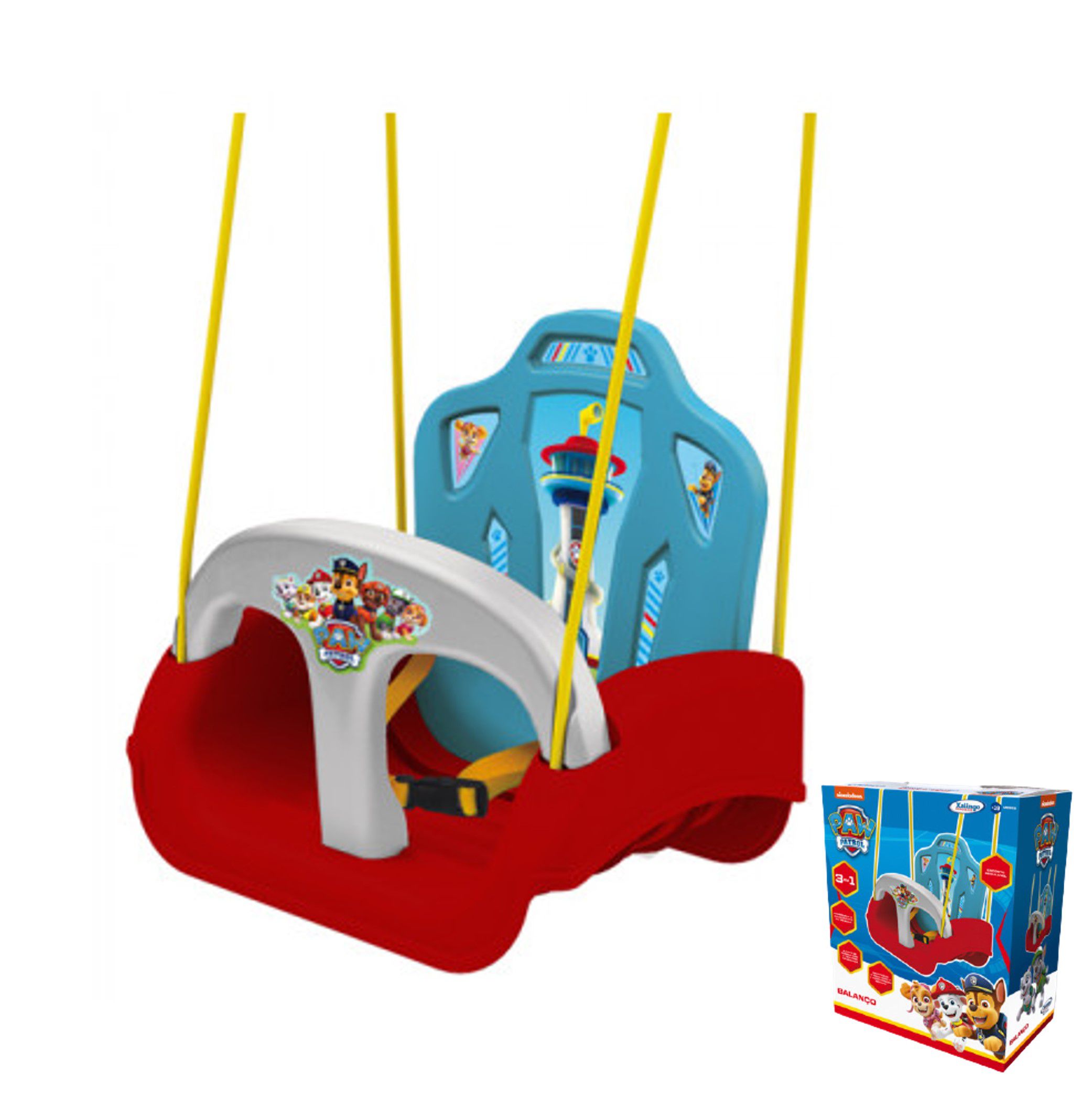 O balanço Patrulha Canina é produzido pelo processo de injeção. É resistente e ergonômico, proporciona conforto à criança durante a utilização, possui cinto de segurança e adesivos divertidos com a temática da Patrulha mais querida do momento.