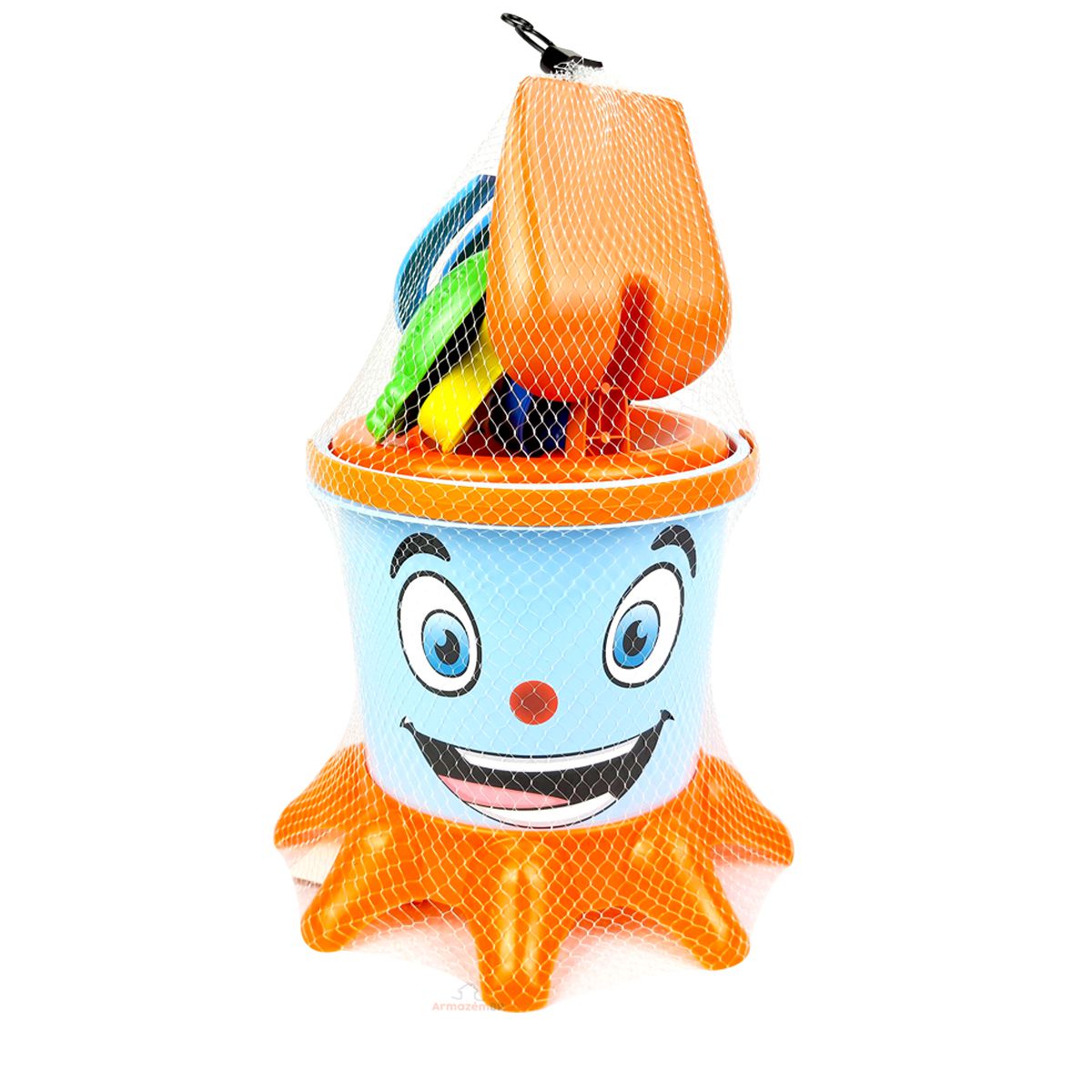 Balde Polvo de Praia Com Brinquedos e Acessórios Infantil Brincar Areia Plásticos Parque - 144 DA ONDA - Laranja