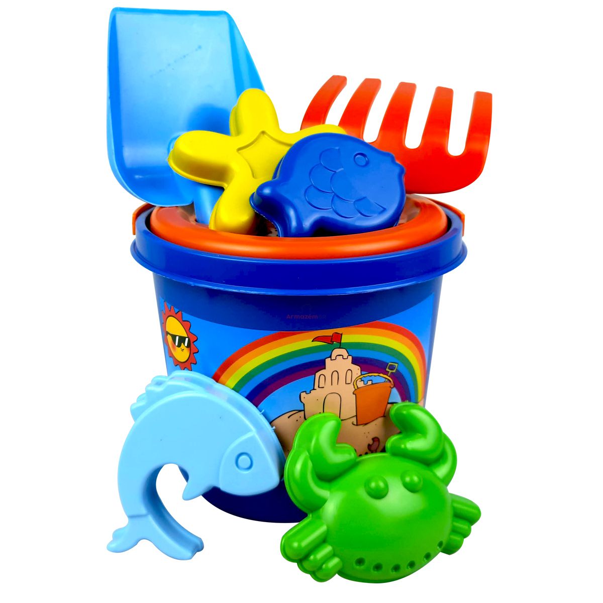 Bolsa Balde de Praia Com Brinquedos e Acessórios Infantil Brincar Areia Plásticos Parque Camping - 108 DA ONDA - Azul