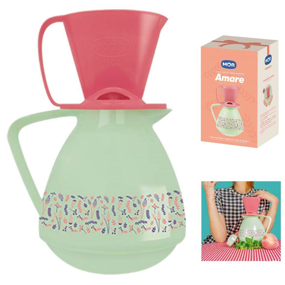 - Cor: Bule Hortelã (Verde Claro) e Suporte Para Coador Pêssego (Coral)