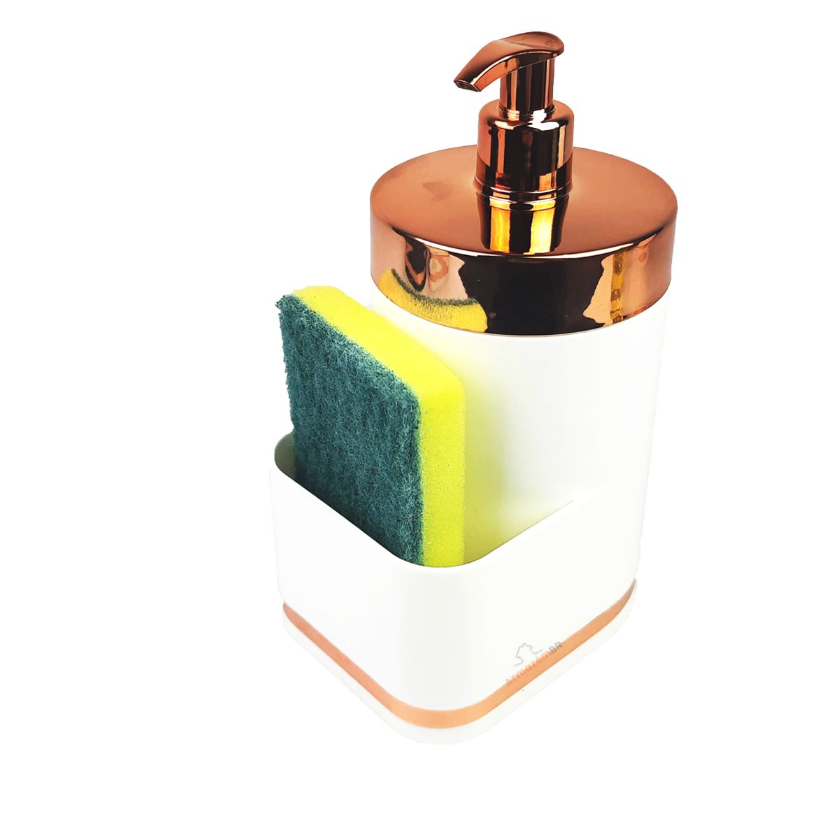 O Organizador de Pia tem capacidade para armazenar 500ml de detergente e 1 esponja. Sua válvula dosadora evita que o detergente derrame no momento do uso, gerando economia e conservando a pia limpa. Conta com detalhe em aço piatina cromado (aço em formato achatado) para combinar com a tampa metalizada.