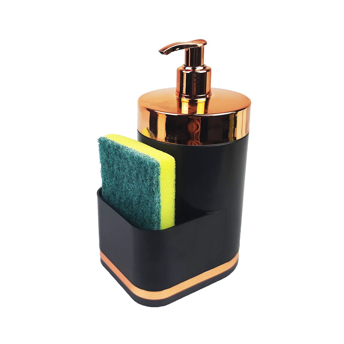O Organizador de Pia tem capacidade para armazenar 500ml de detergente e 1 esponja. Sua válvula dosadora evita que o detergente derrame no momento do uso, gerando economia e conservando a pia limpa. Conta com detalhe em aço piatina cromado (aço em formato achatado) para combinar com a tampa metalizada.