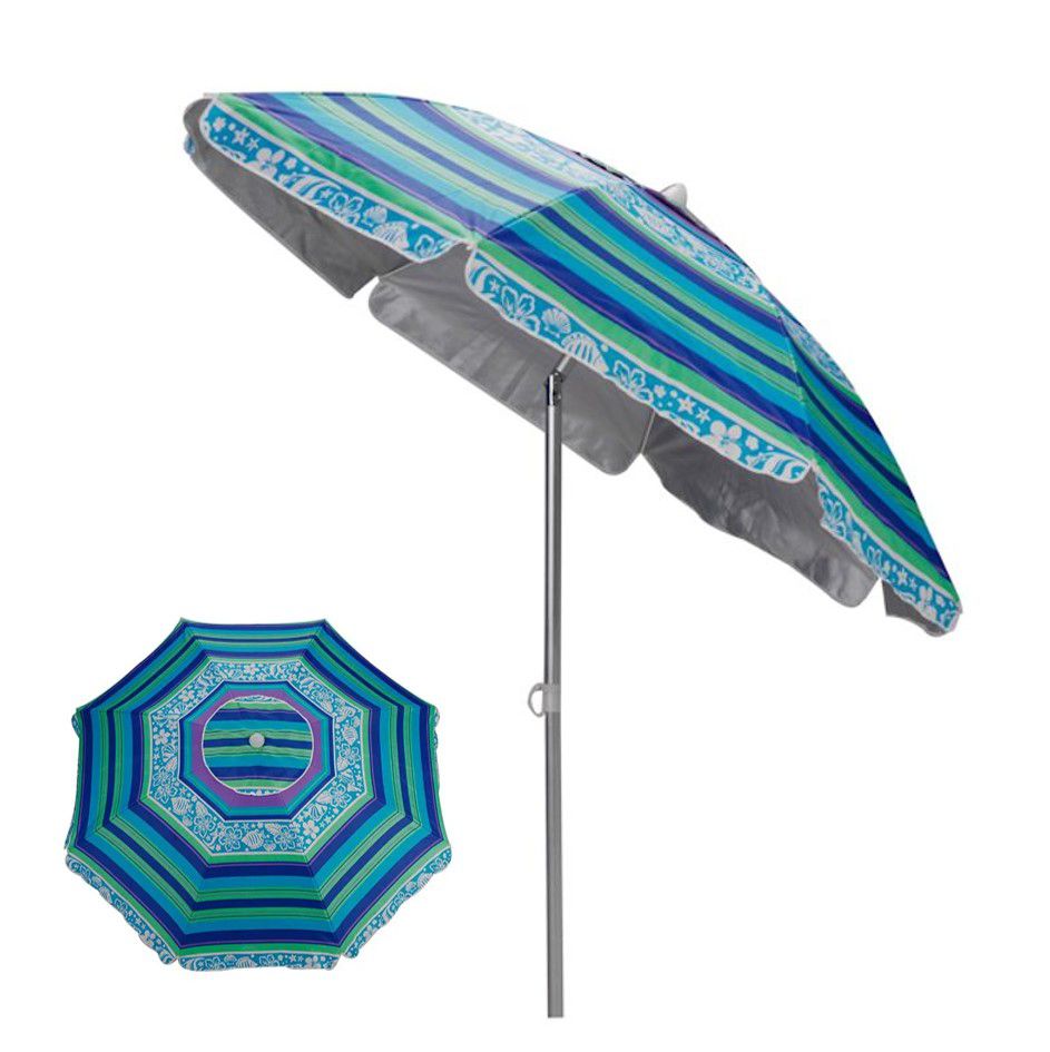 Possui varetas de fibra de vidro reforçadas e uma saída de ar no topo que auxilia na sua estabilidade no chão e para facilitar seu armazenamento e transporte, acompanha prática sacola. Com 2m de diâmetro e haste de 2,09m de comprimento o Guarda-Sol Alumínio apresenta estampa colorida para alegrar a sua área de lazer.