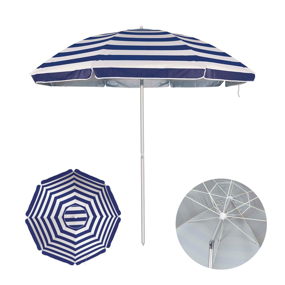 Possui varetas de fibra de vidro reforçadas e uma saída de ar no topo que auxilia na sua estabilidade no chão e para facilitar seu armazenamento e transporte, acompanha prática sacola. Com 2m de diâmetro e haste de 2,09m de comprimento o Guarda-Sol Alumínio apresenta estampa colorida para alegrar a sua área de lazer.