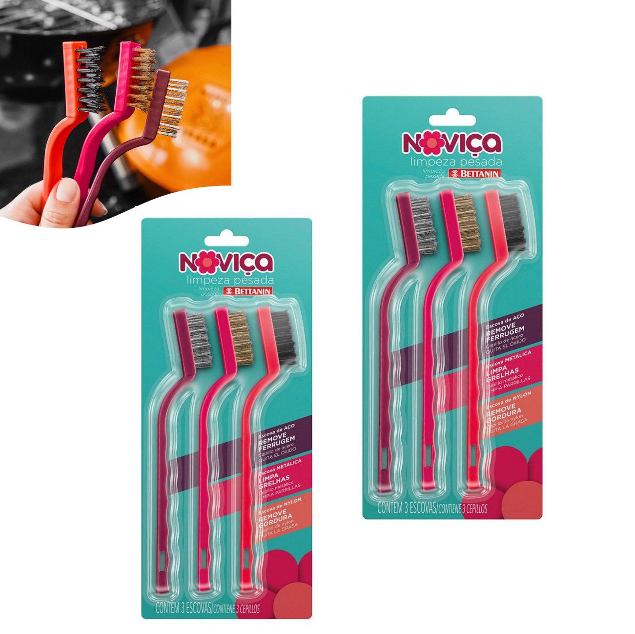 O Kit de Escovas para Limpeza Pesada da Noviça é indicado para a remoção de sujeiras e gorduras impregnadas, de maneira fácil e rápida.