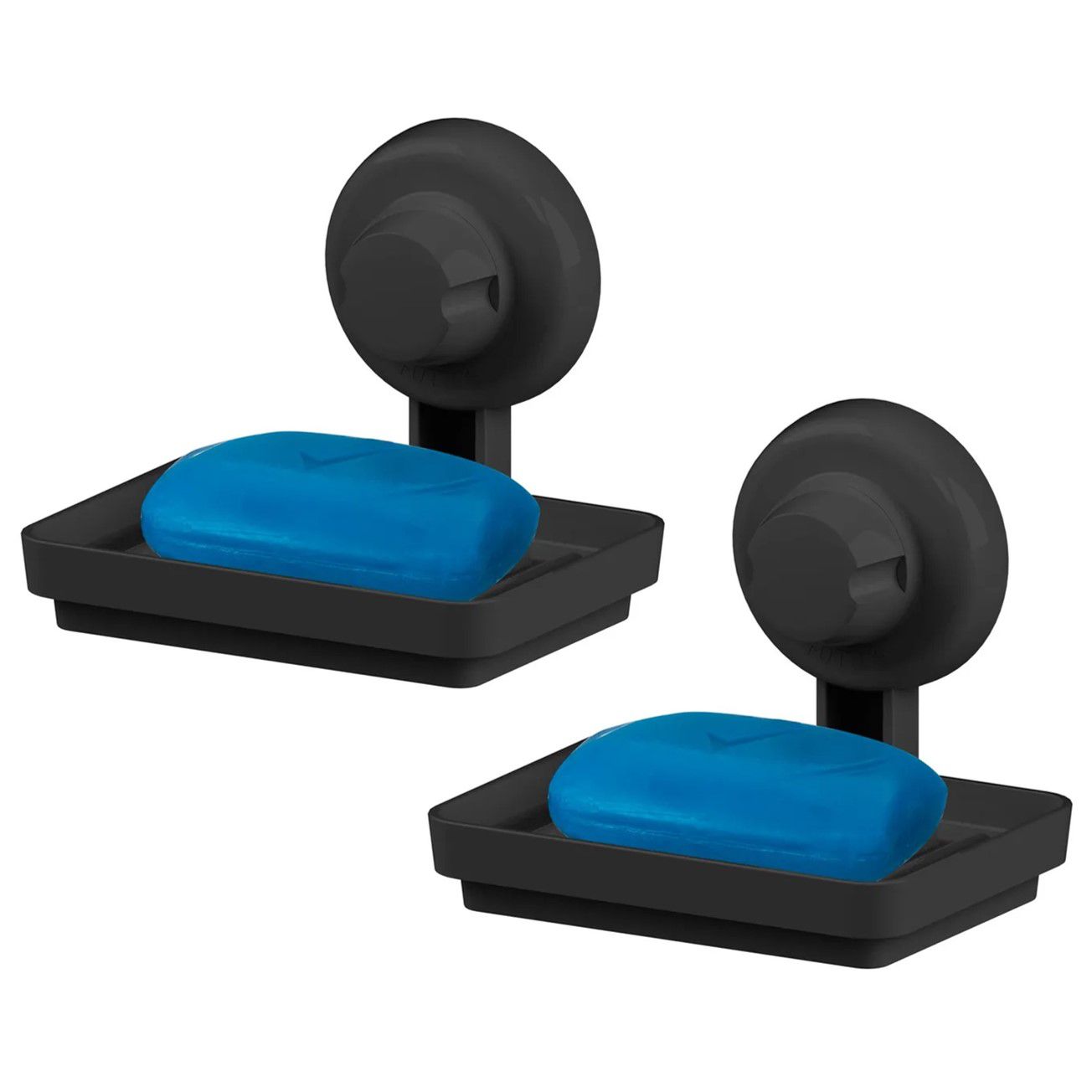 02 - Saboneteira Suporte Porta Sabonete De Parede Com Ventosa Banheiro Preto