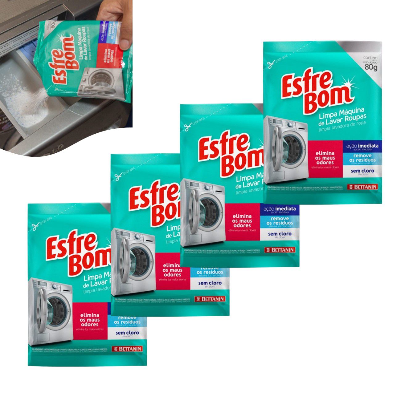 O Limpa Máquinas de Lavar Roupa da EsfreBom é indicado para a limpeza interna da máquina.