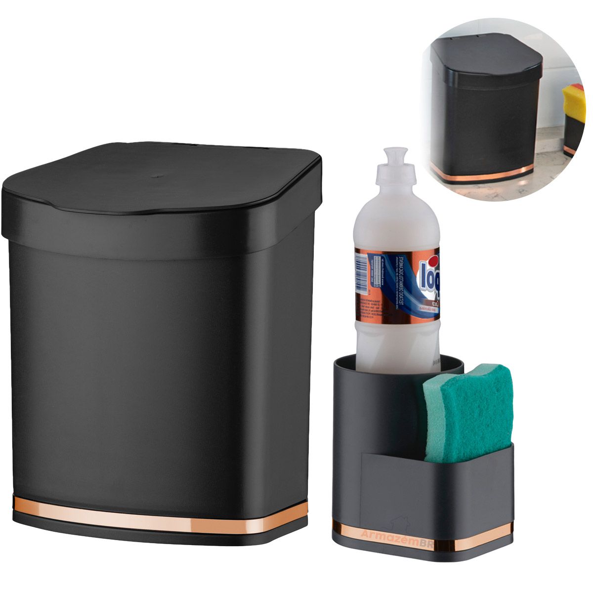 Fabricada em plástico, possui design prático e é de fácil limpeza. Sua tampa é removível e é possível deixar o saquinho de lixo fixo e não aparente.