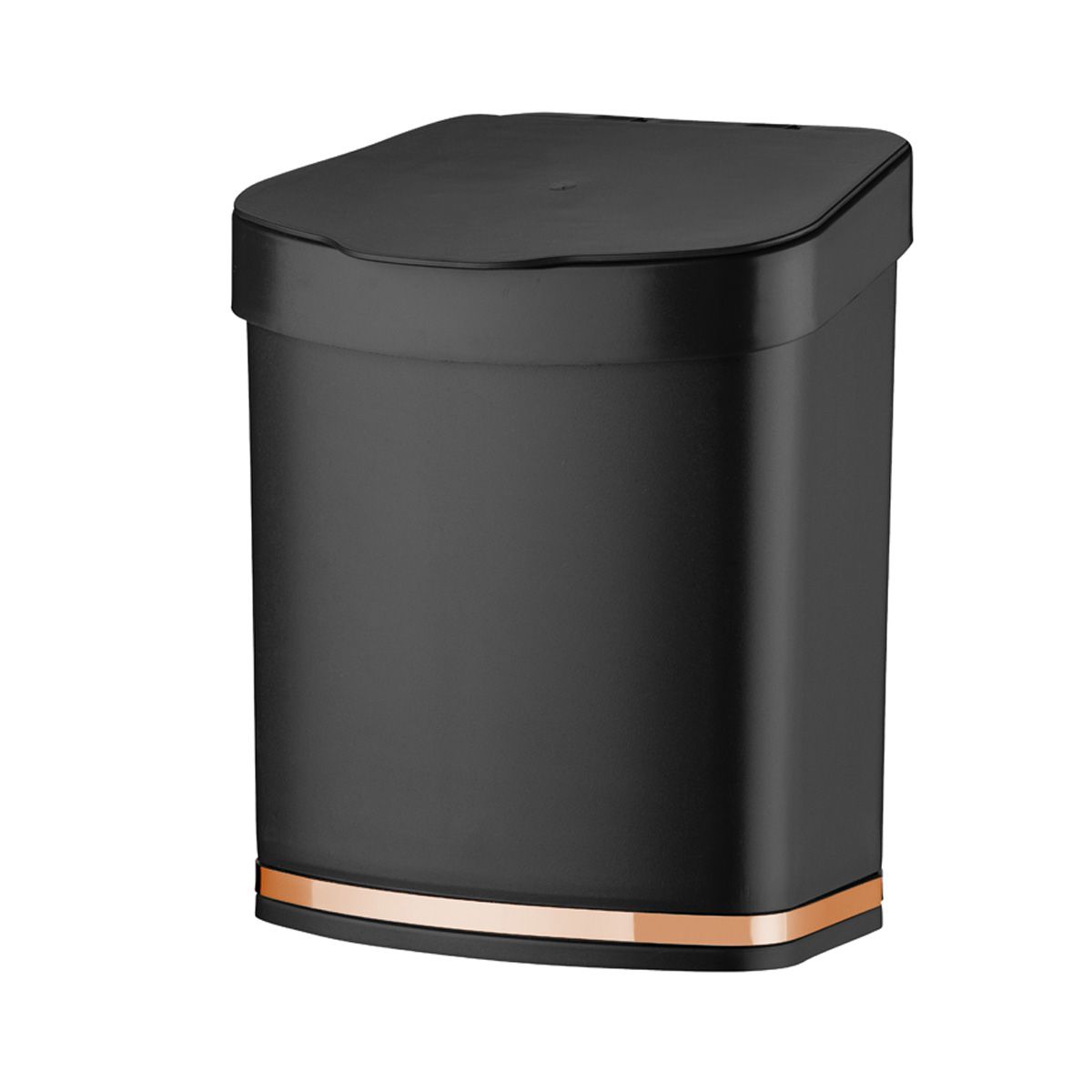 Fabricada em plástico, possui design prático e é de fácil limpeza. Sua tampa é removível e é possível deixar o saquinho de lixo fixo e não aparente.