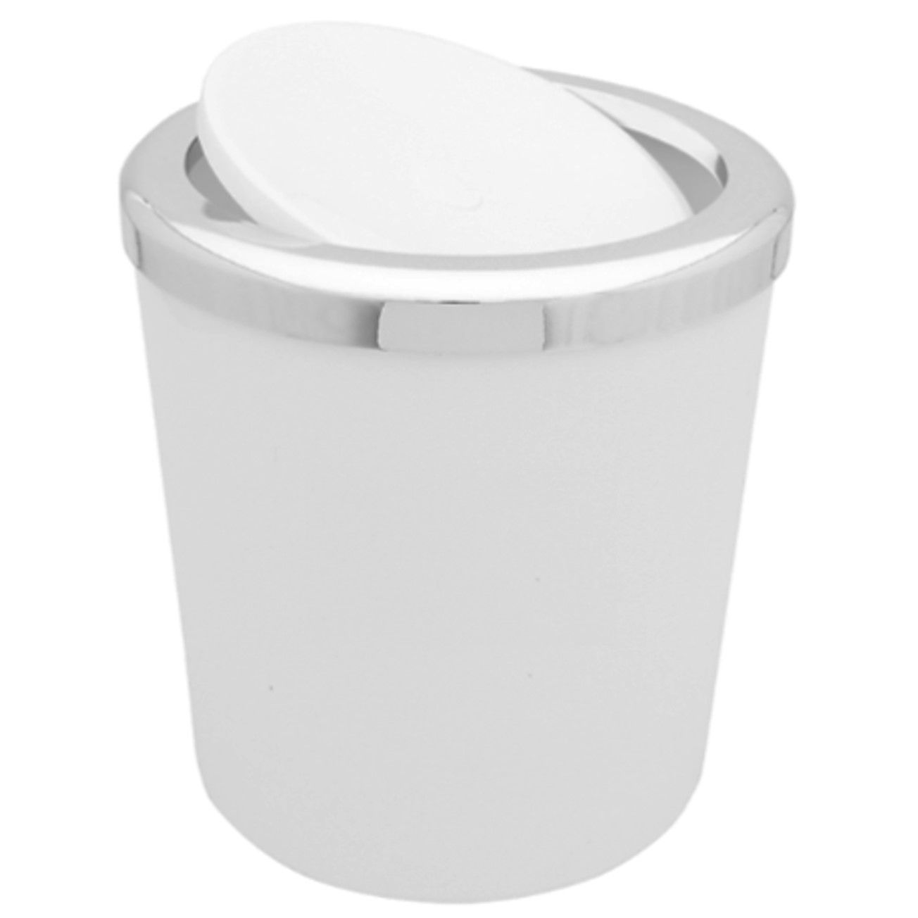 Lixeira 5 Litros Para Banheiro Cozinha Com Tampa Basculante Metalizada Cromada Plástica - AMZ - Branco