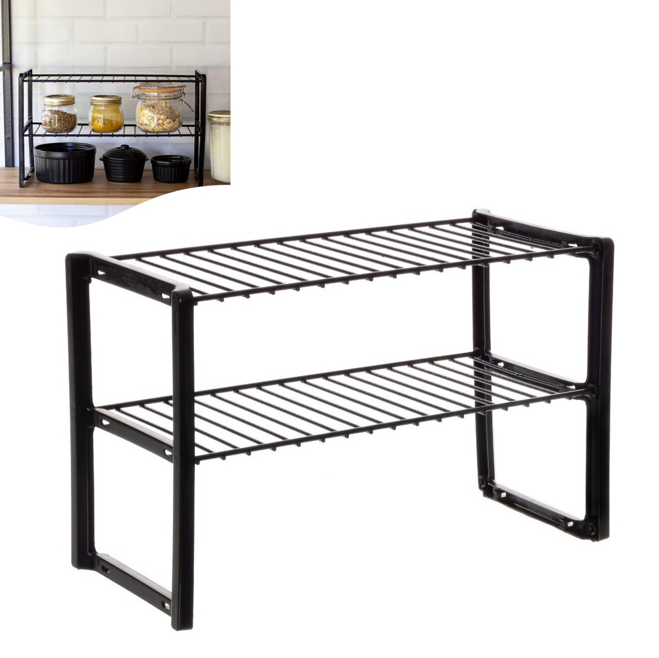 Organizador multiuso aramado para transformar a organização e a decoração de todos os ambientes, principalmente da cozinha. Aproveite ao máximo o espaço dos armários de cozinha, armário de banheiro, armário de lavanderia etc.), agrupe itens em prateleiras ou mesas e evite empilhar objetos. Além de maximizar o espaço e manter os itens no lugar, os organizadores para armário são essenciais para facilitar a rotina diária e proporcionar agilidade no dia a dia. Prática, resistente e versátil, o Rack Organizador Grande de Objetos para Armário Aramado multiplica a capacidade de um armário de qualquer ambiente. Do lado de fora do armário, sobre a bancada ou pia da cozinha, o Rack Organizador Grande de Objetos para Armário Aramado proporciona uma decoração multifuncional: use como suporte para xícaras, canecas, copos e pires, organizador de sachês de chá ou cápsulas de café, entre outras ideias.