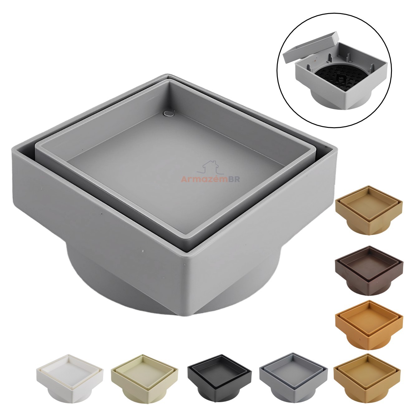 Ralo Oculto Invisível Quadrado 10x10cm Plástico Com Tela Para Banheiro - AMZ - Cinza Claro