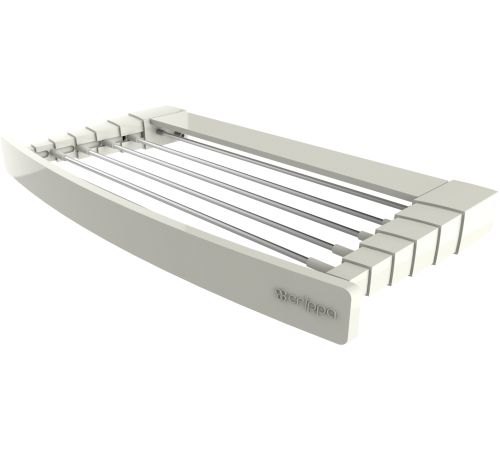 Isso mesmo! Porque além de varal, ele pode servir como toalheiro. Ele abre e fecha e, quando fechado, fica compacto e sobra espaço para uma toalha de banho ou de rosto.